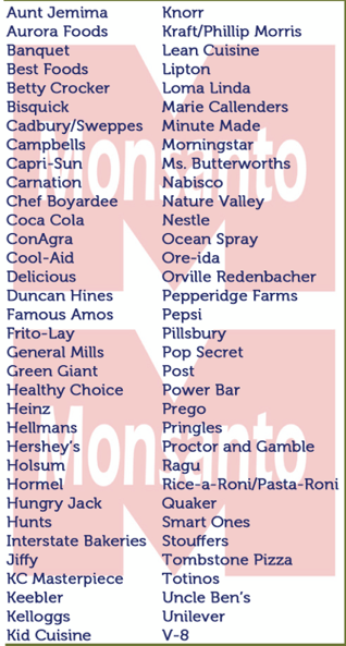 Monsanto Protection Act, here’s a simple, list of companies that use Monsanto products. By avoiding products made by companies on this list, you can help ensure your money isn’t going to Monsanto.
