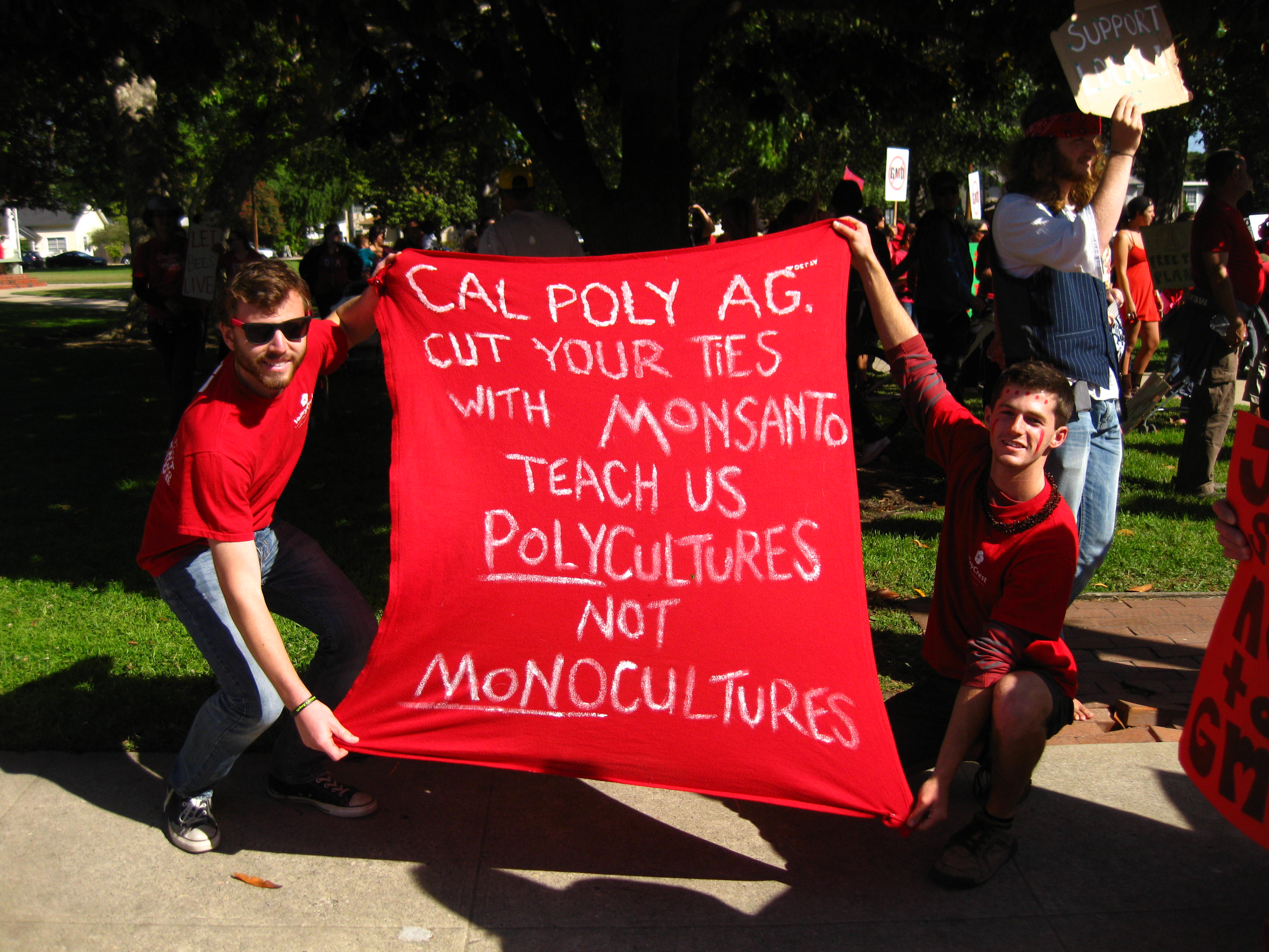 Poly Ag students. Good for them!!!!! Cal Poly is a Big Time Monsanto supporter. These kids have guts. Our future is looking bright.