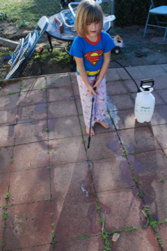 Now I had to take care of it. First stop, Google. I read up on natural herbicides. What could I use that would be nearly as effective as a glyphosphate-based weed killer? The bulk of articles favored straight white vinegar applied with a pump sprayer. So I went to Home  Depot and bought a sprayer for about $10. Then off to the local grocery store for several gallons of white vinegar. Finally, I soaked all the weeds in the back and stood back to see the results.